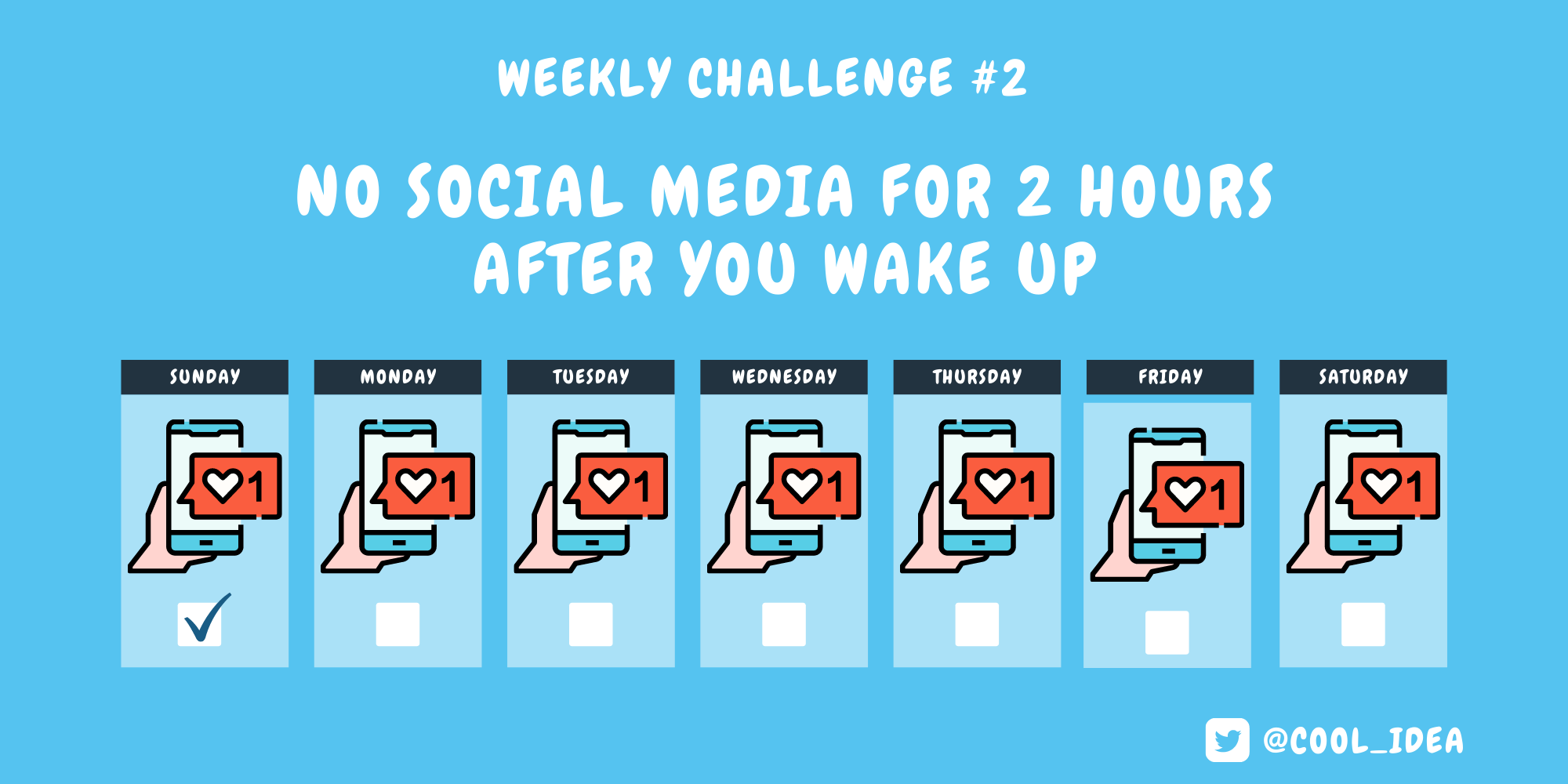 This is going to be a tough one! No social media for at least 2 hours after I wake up. No YouTube, Facebook, Twitter, LinkedIn, Instagram, TikTok, WhatsApp groups,etc. Expanding my comfort zone! Resist mindlessly reaching out grabbing my phone and doing my morning walk ofshame: Twitter -> Emai…